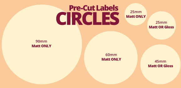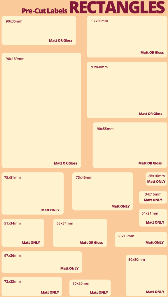 To take advantage of this range of labels, you would need to choose one of our existing shapes. All are available in a matt label stock. Several are also available in a glossy finish as well.